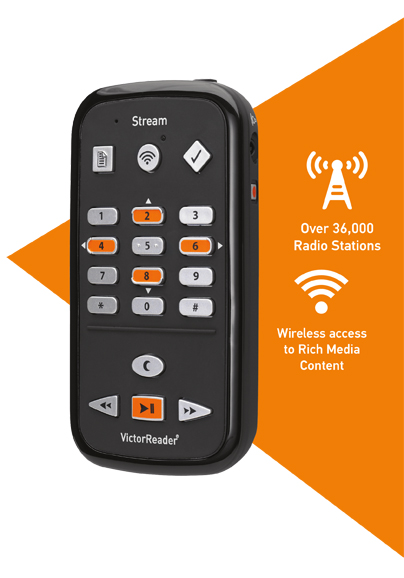 Imagine having the latest novels, magazines, your favorite music, access to over 36,000 web radio stations, audio-described films, online reference tools and rich media content, your own voice recordings and texts, all in the palm of your hand. With its new lightweight and compact design, VictorReader Stream delivers hours of listening pleasure ANYWHERE!